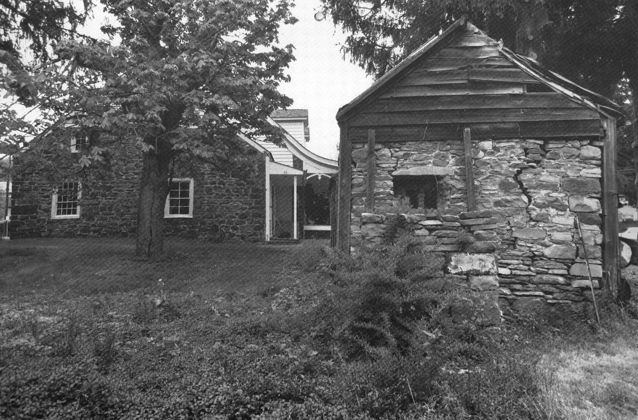 The Hopper-Goetschius house has been the subject of many studies. It appears in Rosalie Bailey’s 1936 book, Pre-Revolutionary Dutch Houses and was included in the WPA’s study of stone houses. This image dates to about 1890. The hitching posts are still there and a picket fence, which did not last very long, lines the property along East Saddle River Road. The photo in the banner at the top of the page is from John Hosey Osborn’s Life in the Old Dutch Homesteads. The image was taken in the 1920s and shows the back of the house. The grapevine fence is gone, but the large iron pot for rendering fat and making soap is in the barn. Note the 12-pane over 8-pane Colonial windows.